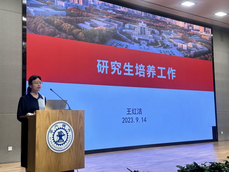 王红洁副院长面向2023级研究生新生介绍研究生培养工作。研究生培养主要由开题报告、中期考核、预答辩以及论文送审四个环节构成,王院长指出,研究生更注重于培养扎实的科研能力,需要重视学习与科研过程中的每一个环节,通过深入严谨的科学研究提升自身的科研能力。王院长还详细介绍了不同学制的研究生培养方案、硕士和博士学位申请条件以及转博时间和条件等人才培养的相关情况,让各位同学更加了解研究生培养的相关流程与环节,合理规划研究生阶段的学习与科研。